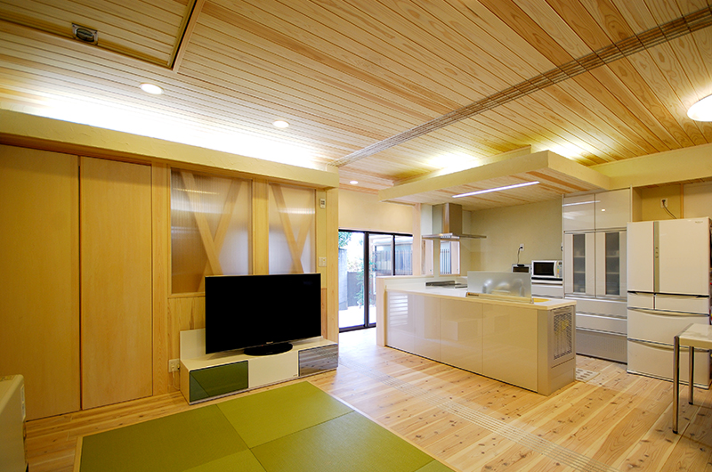 和室とダイニングをバリアフリーでひとつにすることができます。